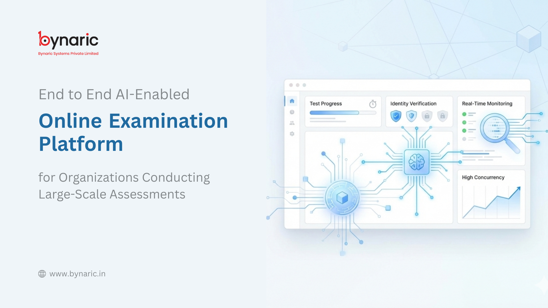 Organizations conducting large-scale assessments required a secure, scalable, and highly configurable online examination system capable of conducting remote and controlled assessments. Traditional exam systems lacked proctoring intelligence, navigation control, flexible evaluation logic, and scalability during peak examination cycles.